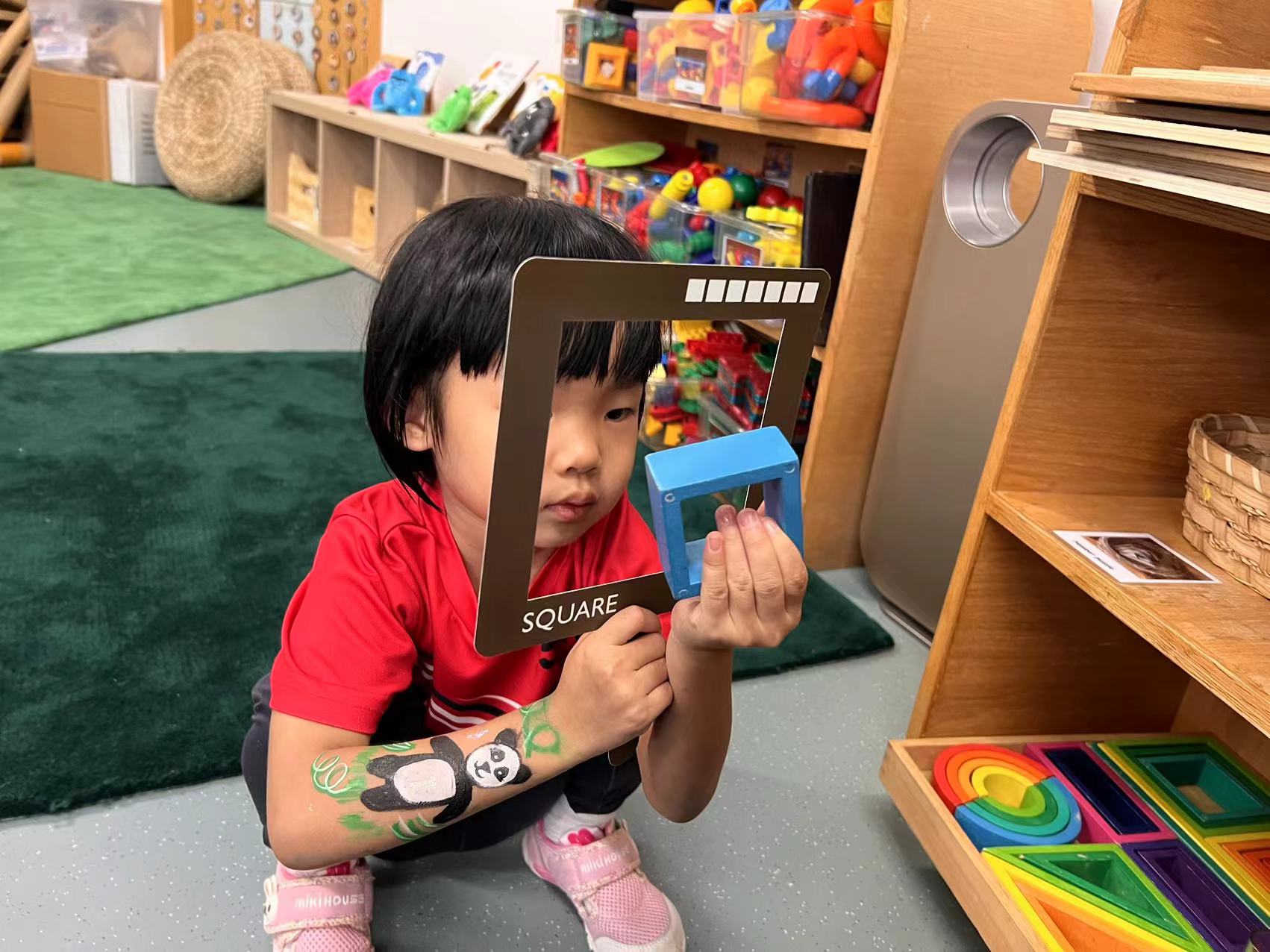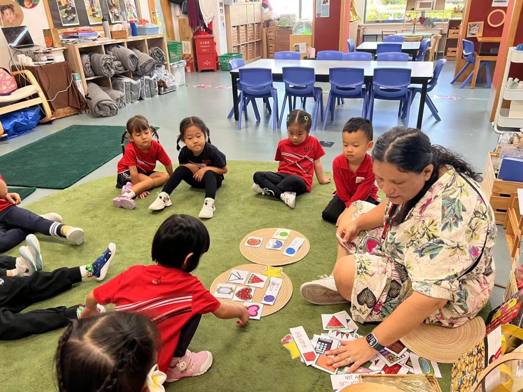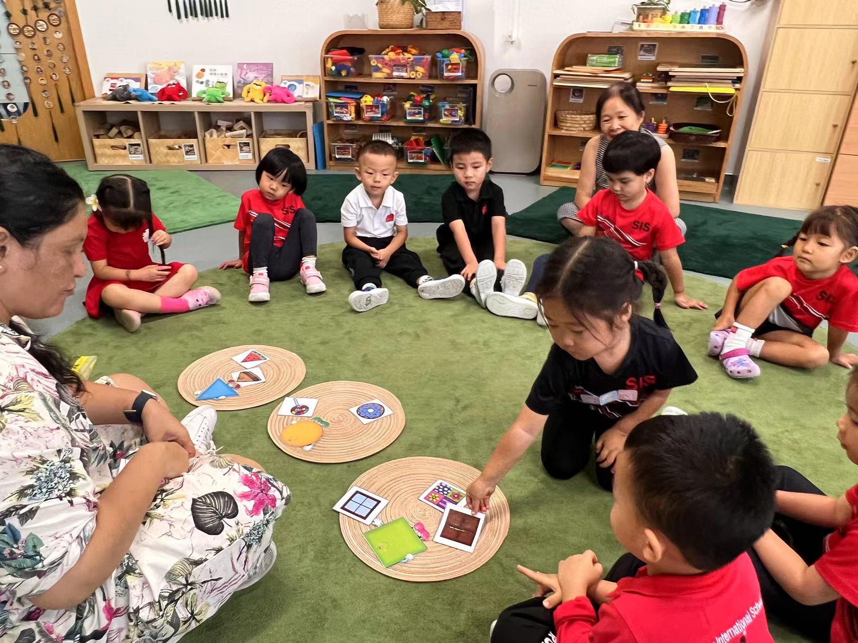 The engagement. It was very simple, bringing in big posters with the 3 basic 2D shapes, circle, square and triangle. The children were excited as I called one by one all the new friends.