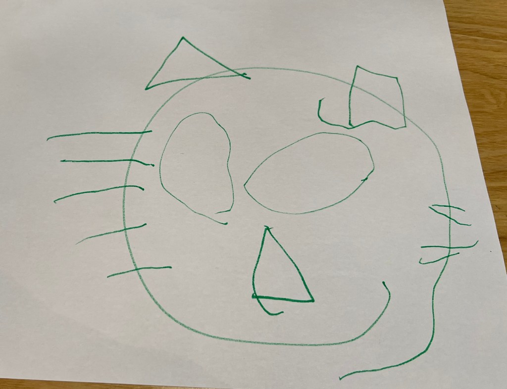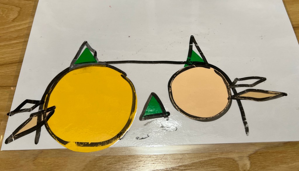 The next day, the children drew a visual closure around each independent shape, and then they recreated their design on a new paper, drawing a picture of their composition.