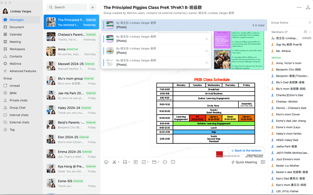 - The schedule: It is pinned to the Wecom group for easy access for parents and the actual class schedule.