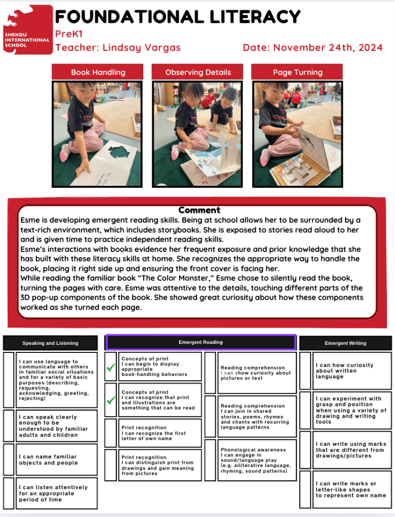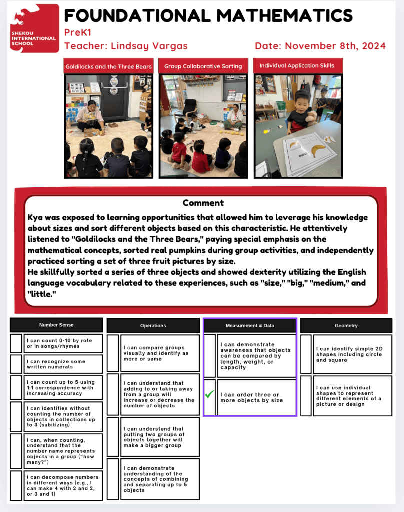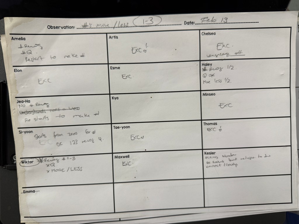 I don’t have a very organized system but with my grid, I can tell exactly where each kid is in all the areas. Also, I often cross references with Ms. Gigi to have a more holistic and broad picture.