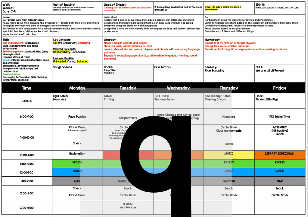 This is my personal weekly plan. I try to integrate DEIJ or SDG when possible.
